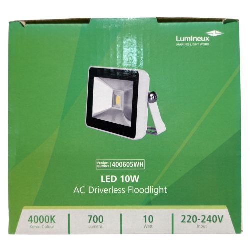 10W (PRE-WIRED) WHITE COOL WHITE SLIM LED FLOODLIGHT
