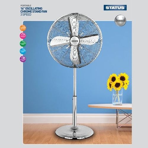 Stay comfortable on those warm summer nights with this pedestal fan. You can rest easy as the oscillating function circulates chilled air around your room. And with 3 speed settings to choose from, staying cool willbe a breeze.This Status 16″ chrome effect metal three speed high portable Pedestal Floor Fan enabling you to direct the fan comfortably in any direction. The fan comes with three adjustable speed options giving you full control over air-flow with near silent operation. Easy to assemble, instructions supplied three speed push button speed control fixed position or oscillates left to right with full tilt option high quality chrome metal finish, sleek contemporary design.