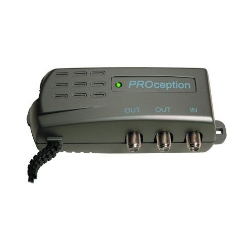 High-performance mains-powered amplifiers for use with wired remote control extender systems using an RF return path, e.g. Sky ‘magic eyes’.