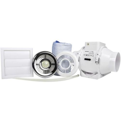 AIRFLOW 100MM 2-SPEED (WITH TIMER) AVENTA FAN KIT WITH LED LIGHT (40/52 l/sec-145/187m3h)