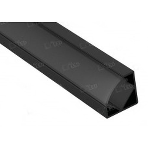 ALL LED 2m Carbon Black Finish Corner/Angled Profile With Black Diffuser, Extruded 6063 Aircraft Aluminium, Incl End Caps & Brackets