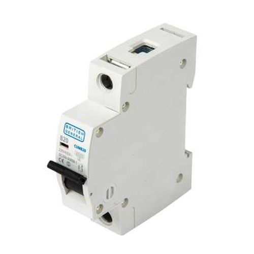 The BG Electrical CUMB20 is a 20A B curve miniature circuit breaker (MCB) with 6kA breaking capacity, manufactured by British General Electrical.