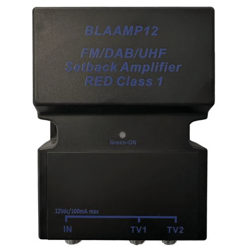 CLASS 1 2-Way FM/DAB/UHF Setback Amplifier 1 Input 2 Outputs 8dB Gain. 5G/4G & TETRA Filtration Low Noise 2.2dB Typical F-Type Connectors, Linear Power Supply