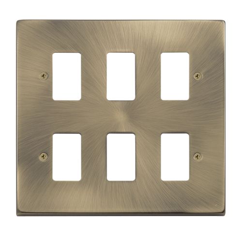 CLICK ANTIQUE BRASS GRIDPRO 6-GANG DECO PLATE