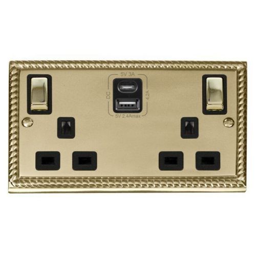 CLICK DECO GEORGIAN CAST BRASS 2G 13A SW SOCKET 4.2A A&C USB INGOT GCBR BLACK