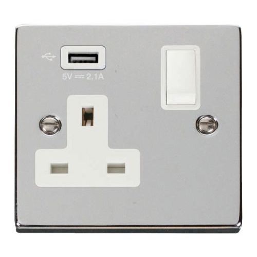 CLICK DECO POLISHED CHROME 1G SOCKET USB 2.1A (P/CH SWI WHT INS)