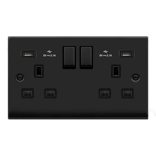 CLICK DECO VICTORIAN MATT BLACK INGOT 13A 2G SOCKET WITH USB