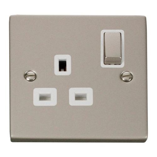 CLICK DECO VICTORIAN PEARL NICKEL INGOT 1-GANG 13A DP SWITCH SOCKET25mm Minimum Mounting Box Depth