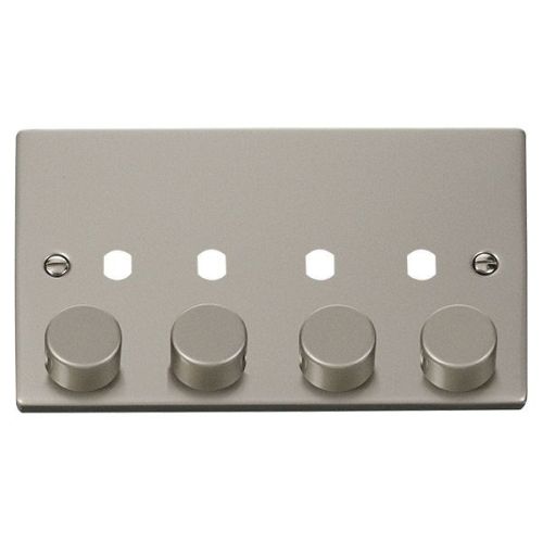 CLICK DECO VICTORIAN PEARL NICKEL VPPN 4-GANG DOUBLE DIMMER PLATE & KNOBS