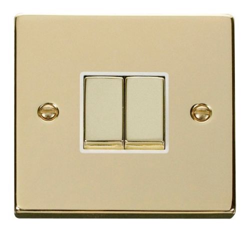 CLICK DECO VICTORIAN POLISHED BRASS INGOT 10A 2-GANG 2 WAY SWITCH (WHITE INSERT)Dimensions – 88 x 88 x 8mm