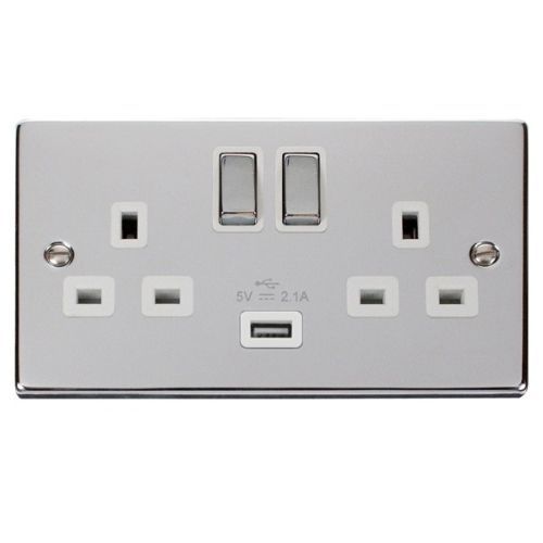 CLICK DECO VICTORIAN POLISHED CHROME 13A 2G SW SOCKET WITH 2.1A USB CH WH INGOT