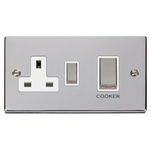 CLICK DECO VICTORIAN POLISHED CHROME INGOT 45A DP SWITCH 13A SW SOCKET WH