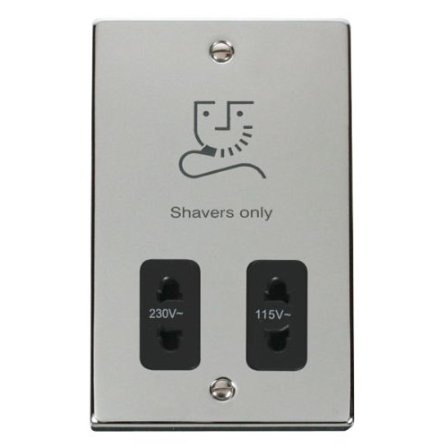 CLICK DECO VICTORIAN POLISHED CHROME VP CHROME DUAL VOLT SHAVER SOCKET BLACKDimensions – 88 x 146 x 8mm