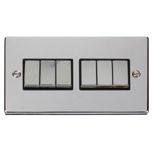 CLICK DECO VICTORIAN POLISHED CHROME VPCHROME INGOT 10A 6-GANG 2 WAY SWITCHDimensions – 146 x 88 x 8mm