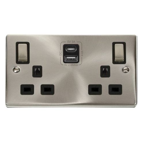 CLICK DECO VICTORIAN SATIN CHROME 2G 13A SW SOCKET 4.2A A&C USB INGOT VP WH