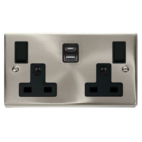 CLICK DECO VICTORIAN SATIN CHROME 2G 13A SW SOCKET 4.2A A&C USB VP BLACK