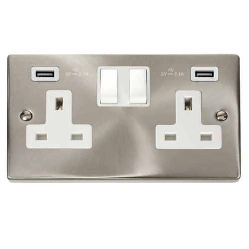 CLICK DECO VICTORIAN SATIN CHROME 2G SOCKET USB 4.2A DECOinals and large chamfered terminal entries for easy installation