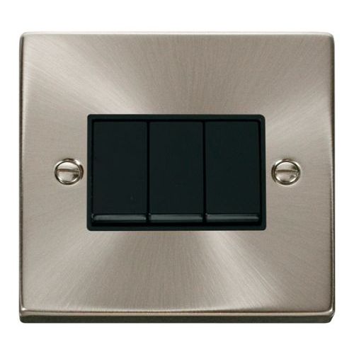 CLICK DECO VICTORIAN SATIN CHROME VP 10A 3-GANG 2 WAY SWITCH BLACK