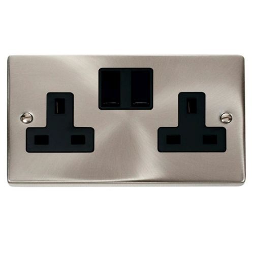 CLICK DECO VICTORIAN SATIN CHROME 2-GANG 13A DP SWITCHED SOCKET (BLACK INSERT)