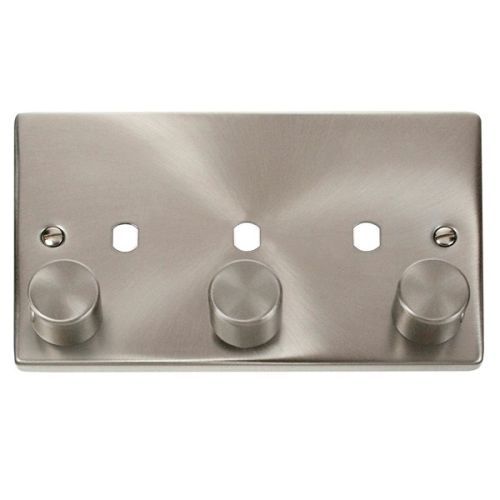 CLICK DECO VICTORIAN SATIN CHROME VP 3-GANG DOUBLE DIMMER PLATE & KNOBSDimensions – 146?x 88 x 8mm