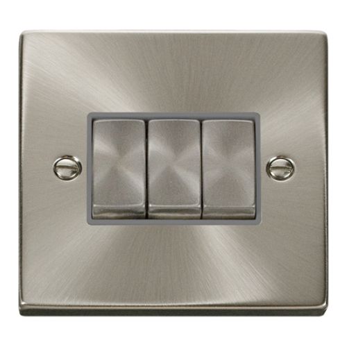 CLICK DECO VICTORIAN SATIN CHROME INGOT 10A 3-GANG 2 WAY SWITCH (GREY INSERT)