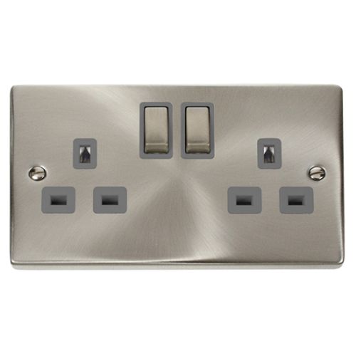 CLICK DECO VICTORIAN SATIN CHROME 13A 2G INGOT SWITCHED SOCKET OUTLET (GREY INSERT)