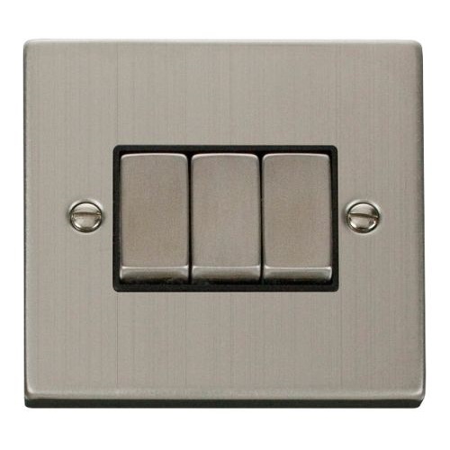 CLICK DECO VICTORIAN STAINLESS STEEL INGOT 10A 3-GANG 2 WAY SWITCH25mm Minimum Mounting Box Depth