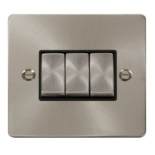 CLICK DEFINE BRUSHED STAINLESS FLAT PLATE INGOT 10A 3-GANG 2WAY SWITCH