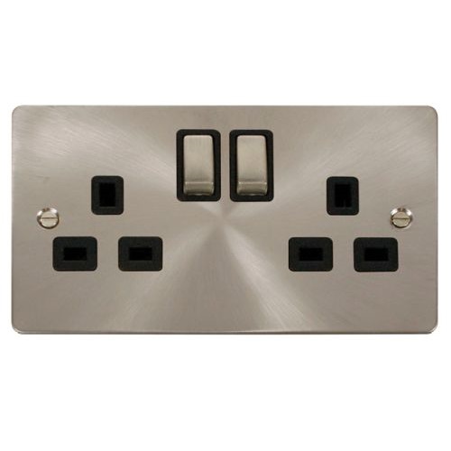 CLICK DEFINE BRUSHED STAINLESS FLAT PLATE INGOT 2-GANG 13A DP SWITCH SOCKET