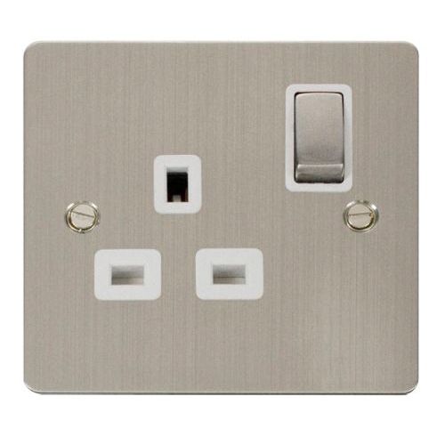 CLICK DEFINE STAINLESS STEEL FLAT PLATE INGOT 1-GANG 13A DP SWITCHED SOCKET