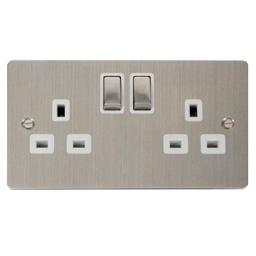 CLICK DEFINE STAINLESS STEEL FLAT PLATE INGOT 2-GANG 13A DP SWITCH SOCKET