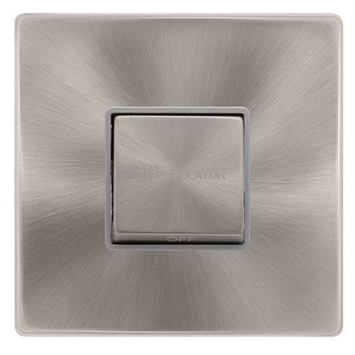 Click Definity Complete 10a Ingot 3 Pole Fan Isolation Switch – Brushed Steel Cover Plate – Grey Insert