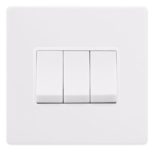 Click Definity Complete 10ax Ingot 3 Gang 2 Way Switch – Polar White Cover Plate – Polar White Insert