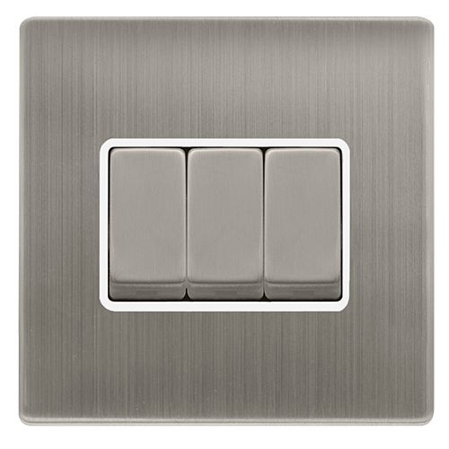 Click Definity Complete 10ax Ingot 3 Gang 2 Way Switch – Stainless Steel Cover Plate – Polar White Insert