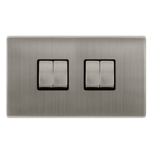 Click Definity Complete 10ax Ingot 4 Gang 2 Way Switch – Stainless Steel Cover Plate – Black Insert