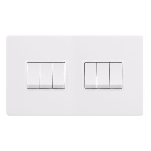 Click Definity Complete 10ax Ingot 6 Gang 2 Way Switch – Polar White Cover Plate – Polar White Insert