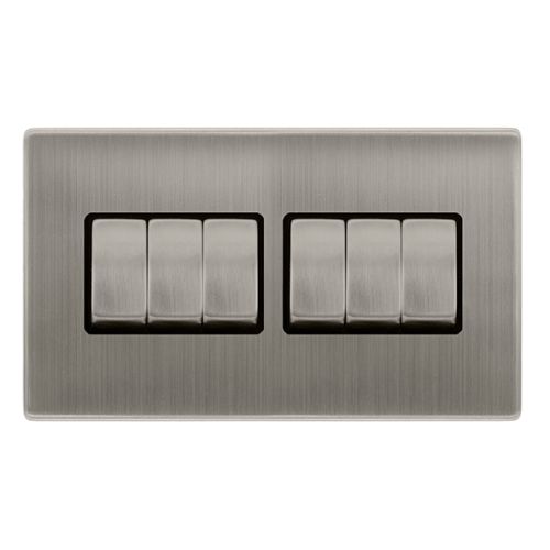 Click Definity Complete 10ax Ingot 6 Gang 2 Way Switch – Stainless Steel Cover Plate – Black Insert