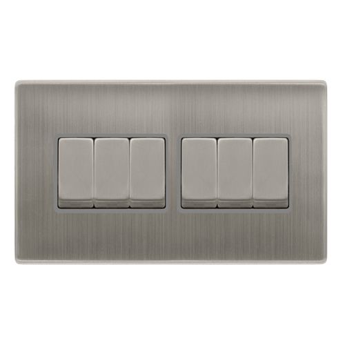 Click Definity Complete 10ax Ingot 6 Gang 2 Way Switch – Stainless Steel Cover Plate – Grey Insert
