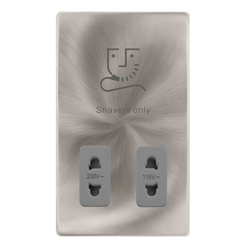 CLICK DEFINITY COMPLETE 115/230V DUAL VOLTAGE SHAVER SOCKET – BRUSHED STEEL COVER PLATE – GREY INSERT