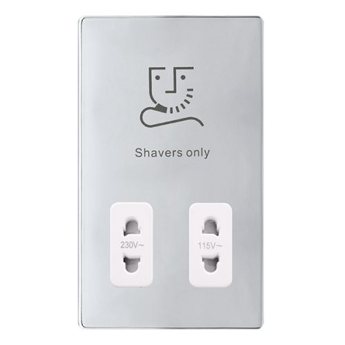 Click Definity Complete 115/230v Dual Voltage Shaver Socket – Polished Chrome Cover Plate – Polar White Insert