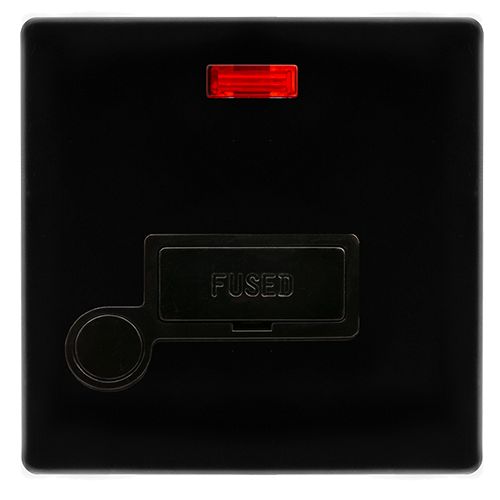 CLICK DEFINITY COMPLETE 13A FUSED CONNECTION UNIT WITH NEON & OPTIONAL FLEX OUTLET – METAL BLACK COVER PLATE – BLACK INSERT