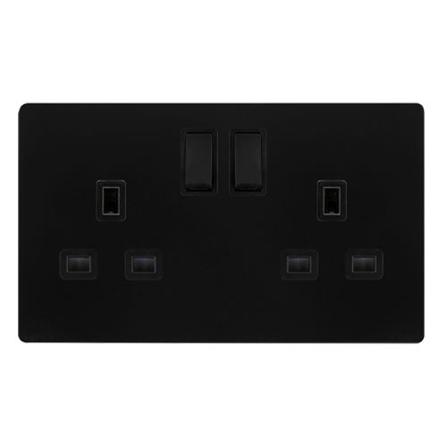 Click Definity Complete 13A Ingot 2 Gang DP Switched Socket – Matt Black Cover Plate – Black Insert