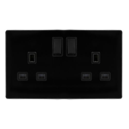 Click Definity Complete 13A Ingot 2 Gang DP Switched Socket – Metal Black Cover Plate – Black Insert