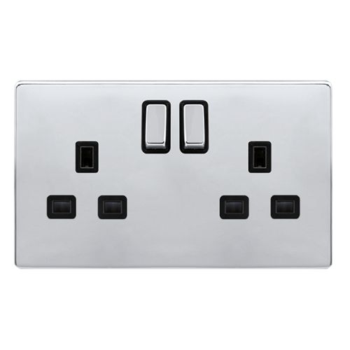 Click Definity Complete 13A Ingot 2 Gang DP Switched Socket – Polished Chrome Cover Plate – Black Insert