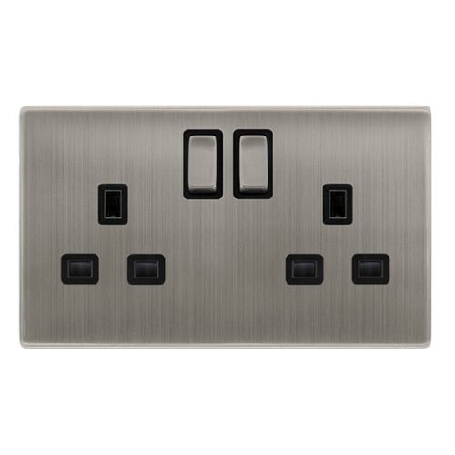 Click Definity Complete 13A Ingot 2 Gang DP Switched Socket – Stainless Steel Cover Plate – Black Insert