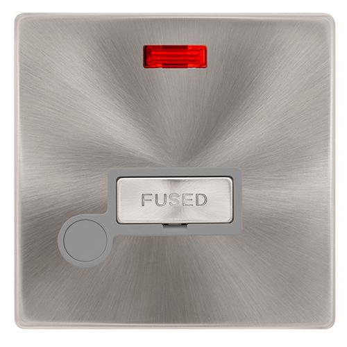 Click Definity Complete 13A Ingot Fused Connection Unit With Neon & Optional Flex Outlet – Brushed Steel Cover Plate – Grey Insert