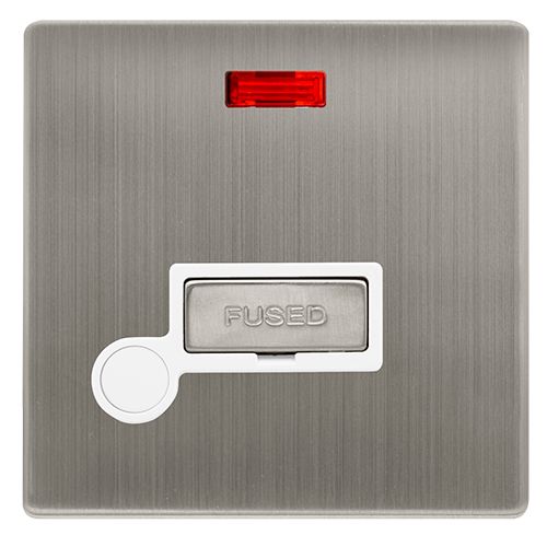 CLICK DEFINITY COMPLETE 13A INGOT FUSED CONNECTION UNIT WITH NEON & OPTIONAL FLEX OUTLET – STAINLESS STEEL COVER PLATE – POLAR WHITE INSERT