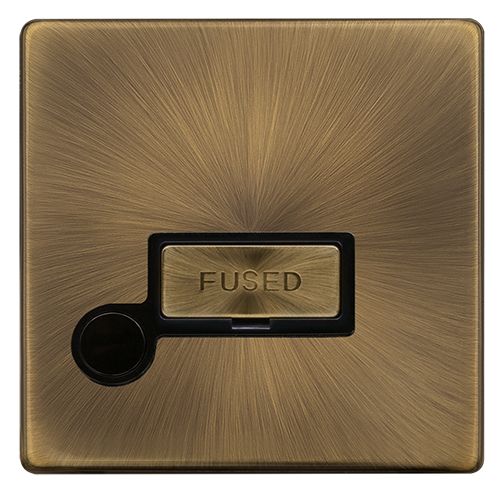 Click Definity Complete 13A Ingot Fused Connection Unit With Optional Flex Outlet – Antique Brass Cover Plate – Black Insert