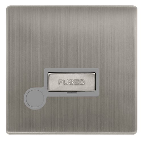 CLICK DEFINITY COMPLETE 13A INGOT FUSED CONNECTION UNIT WITH OPTIONAL FLEX OUTLET – STAINLESS STEEL COVER PLATE – GREY INSERT