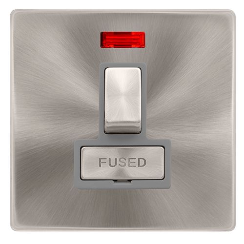 Click Definity Complete 13A Ingot Switched Fused Connection Unit With Neon – Brushed Steel Cover Plate – Grey Insert